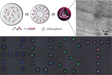 4月2日,《先进材料》在线刊发了题为“Responsive Block Copolymer Photonic Microspheres” (Adv. Mater. 2018, DOI: 10.1002/adma.201707344)的研究成果。我校为第一完成单位,论文第一作者是化学与化工学院博士生杨一,朱锦涛教授为论文通讯作者。光子晶体是具有周期性有序结构的光学材料,由于结构多样性和可设计性使其在显示、编码载体、传感和光纤等方面有重要应用。该团队针对目前人工光子晶体制备方法复杂,形式单一、光学信号的角度依赖等问题,设计了一种基于嵌段共聚物的响应性光子晶体微球。通过微流控技术与嵌段聚合物空间受限组装相结合的方法,构建了具有类似洋葱状的同心层有序结构;独特的三维对称结构使其在溶液pH值和有机溶剂响应时具有良好的单色性和光学信号角度独立性,可用于溶液性质的裸眼检测和传感等领域。该研究不仅提出了一种新的有序结构光学材料构筑方法,还为设计周期性结构提供了一种新的模板。