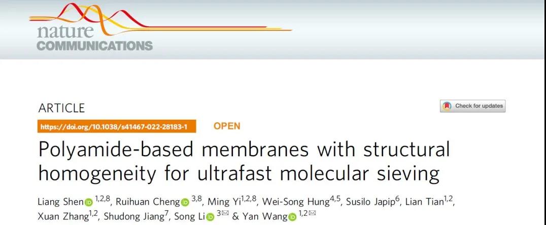 华中科技大学王艳教授、李松副教授合作《自然·通讯》: 聚酰胺复合膜选择层纳米尺度均质性调控