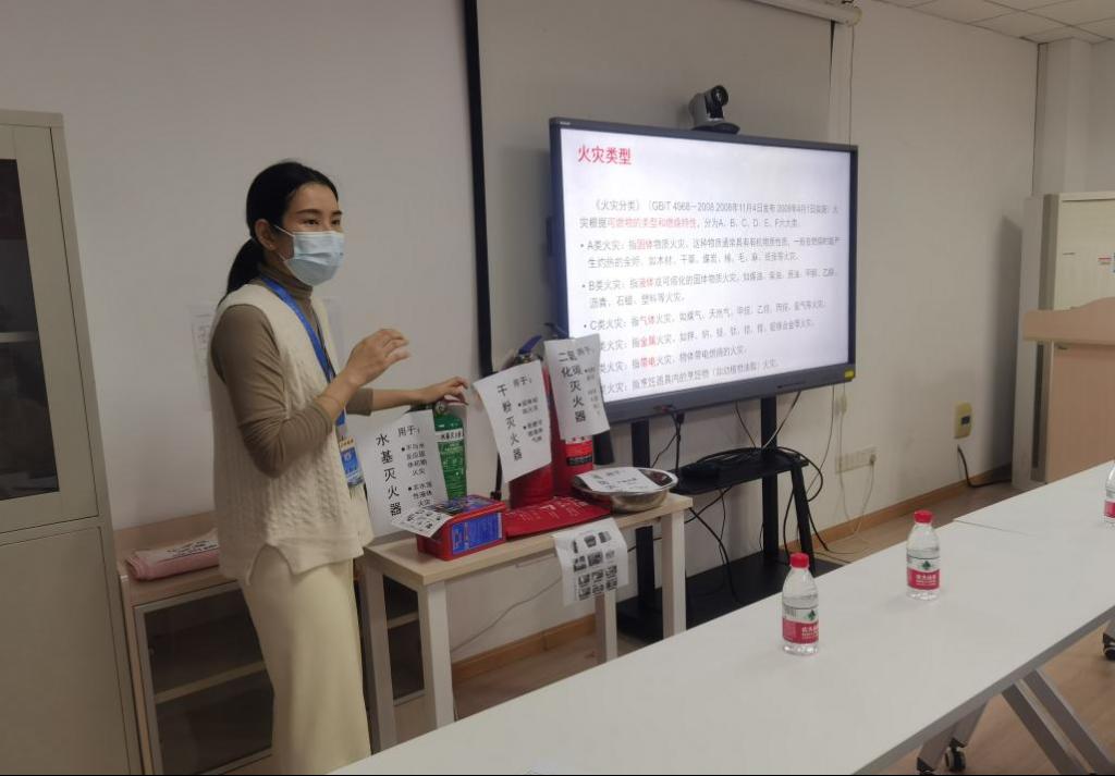 消防安全知识培训由保卫处陈嘉璇科长主讲。通过开心麻花《灭真火真灭火》的短视频,陈科长为大家讲述了火灾的可怕性以及不会使用灭火器的危害性。接着通过国家消防部的火灾案例,陈科长从宿舍、办公室、实验室的用电安全、消防安全应急措施等方面,就火灾安全隐患、消防安全责任等方面向我院师生进行了详细说明和分析。陈科长一边讲述还一边向大家展示了各类火灾对应的各种灭火器的使用方法,同学们听得津津有味。通过讲座的培训,大家初步掌握了火灾险情出现时的灭火和逃生基本技能。