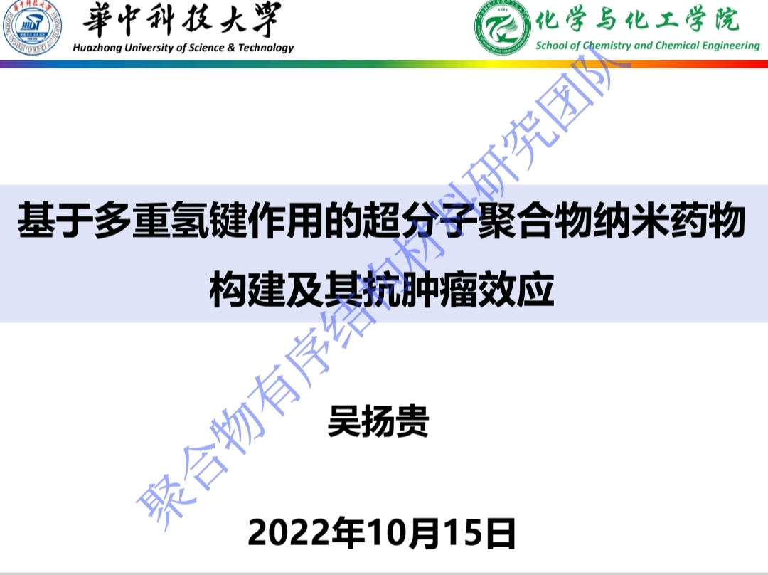 陈森斌老师课题组的吴扬贵学长围绕主客体药物在生物医学领域的应用展开,以治疗癌症为背景,指出了纳米药物治疗肿瘤的新机遇,为我们展现了这一学科在人类社会发展中的巨大作用。