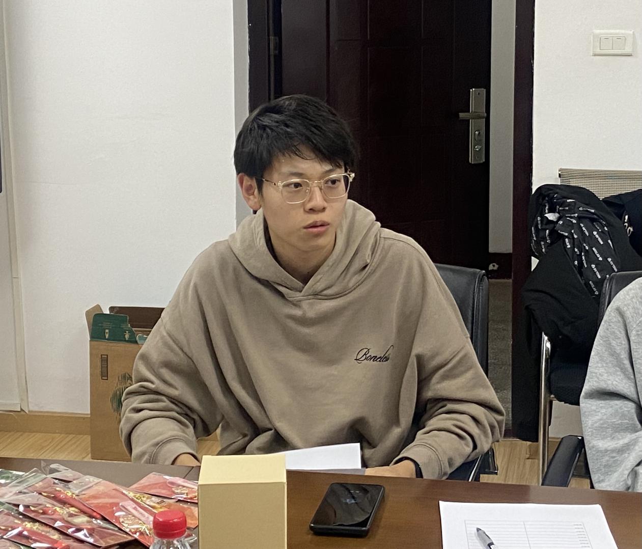 老师、同学们就如何结合实际提升我院体育工作实效的问题开展了热烈讨论。刘沛涵同学表示,作为校男排的一员和院排球队的队长,可以感受到校内运动氛围非常好。排球队训练吸取了校队训练的方法,更注重基础练习。同时,球队也存在着队伍主力更迭快,人力不足等问题。他希望大家在开心运动的同时可以学到本领,获得一群有共同爱好的伙伴。目前,球队正在积极训练,备战明年的华工杯。