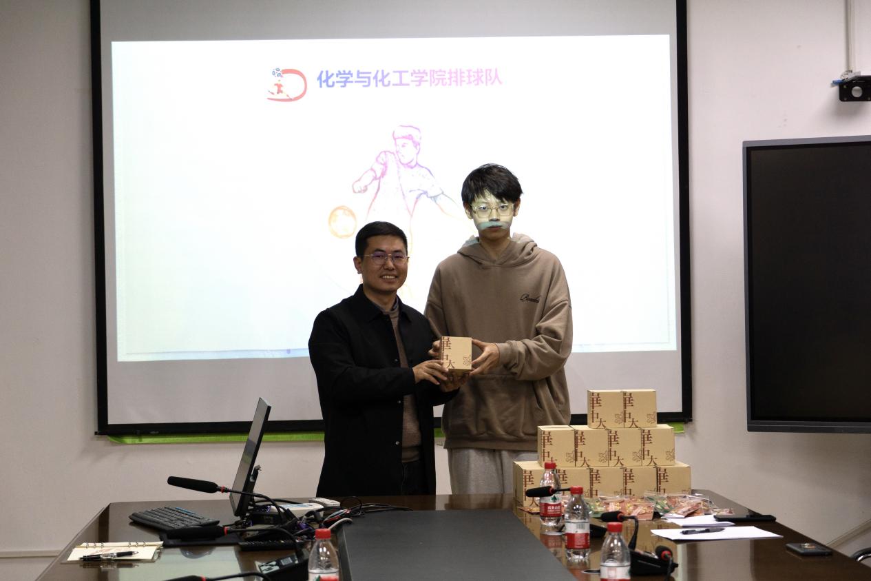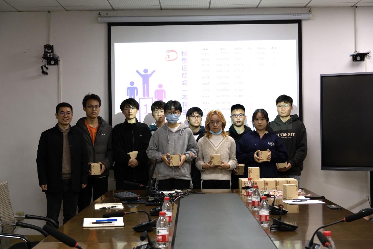 随后进行颁奖仪式。聂红波书记先后为学院排球队、秋季运动会本科生运动员代表、研究生运动员代表颁发奖品。今年,学院排球队在新生杯排球赛中勇夺冠军。在秋季运动会中,本科生取得乙组第四,研究生取得乙组第六的好成绩。每一项获奖,都离不开运动员们的坚持训练、顽强拼搏,离不开体育部门工作人员们的辛勤付出!