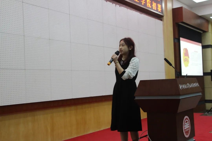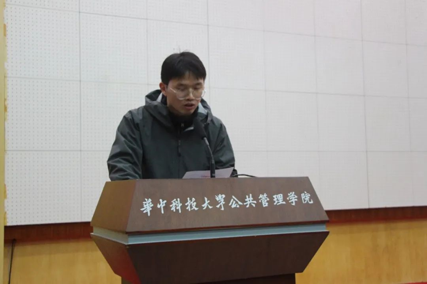 然后,公共管理学院团委书记、本科生辅导员何磊老师致辞。他表示“学习新思想,争做新青年”,本次比赛为同学们提供了一个锻炼和展示自我的机会,可以使同学们更加深刻地感受五四精神。何磊老师不仅对现场全体青年同学寄予厚望,而且对参赛选手表示鼓励,预祝比赛取得成功。
