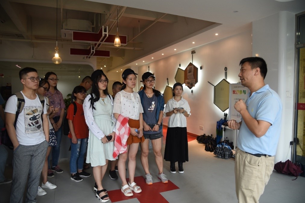 当日下午,参观团受邀前往选址在深圳市光明新区的“爱湾医学”公司参观。据悉,“爱湾医学”是一家致力于新生儿遗传代谢病检测、诊断及辅助治疗服务的独立第三方医学实验室。抵达后,“爱湾医学”董事长杨江涛先生详细地向我们介绍了两年前创办这一关于新生儿疾病筛查的分析化学实验室的过程,并在实验室内为参观团展示了完整的工作流程。公司总部员工墙上AGCTU的碱基图案、整洁的实验室、像是化工流程的书柜设计、具有人本关怀的创新专利,以及和谐的公司氛围,都给参观团留下了很深的印象。
