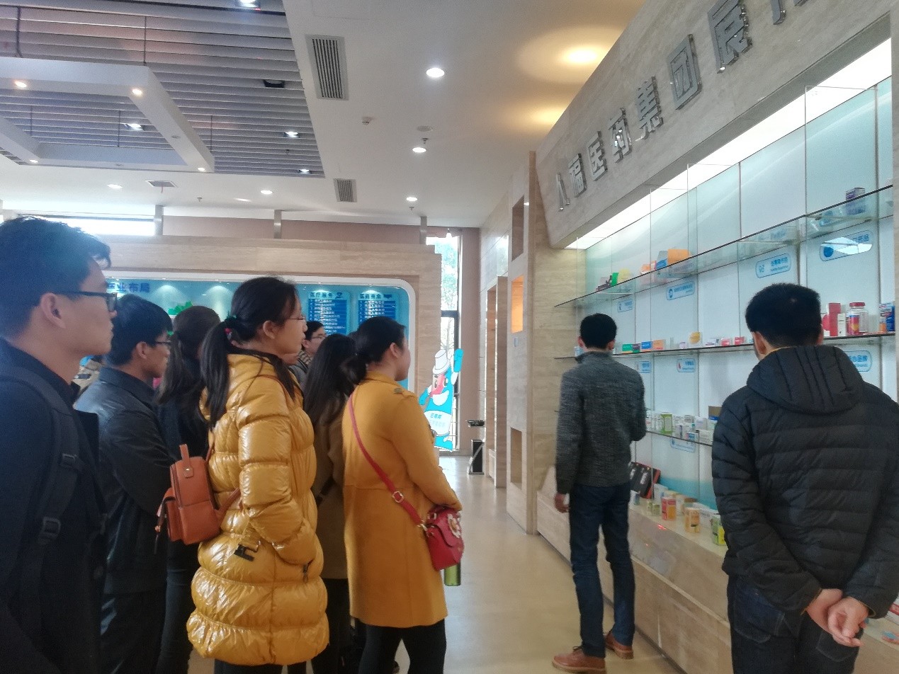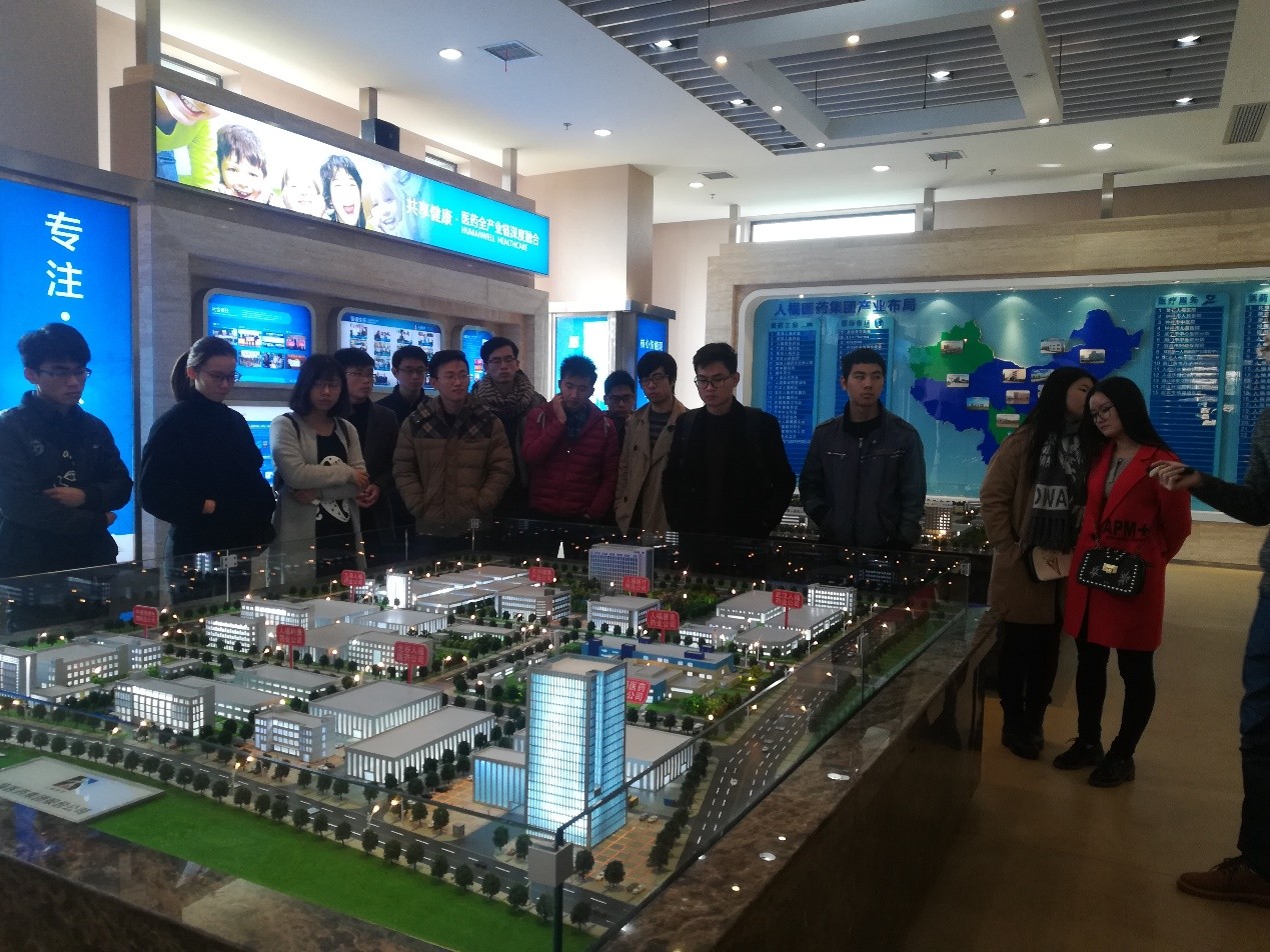 大家首先来到了此行的第一站--人福医药集团股份有限公司总部。一名我校校友向我们详尽的介绍了人福医药集团股份有限公司的发展历史,战略目标,产业布局和突出的企业文化。作为湖北省第一家上市的民营高科技企业,也是武汉东湖新技术开发区第一家上市公司,人福医药已成为综合性的医药产业集团,下辖10多家医药生产企业和多家医药商业企业是湖北省内生产能力最强、剂型最全、品种最多、资源最雄厚的医药企业。 在这半个小时的解说中,我们感受到了一个完整,立体,有活力的人福,学长的解说像是一把钥匙,打开了我们对人福求知的大门。