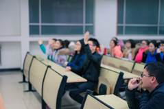 到了知识竞赛的阶段,刚刚慷慨激昂的氛围变得轻松而活泼。来自三个专业的六个队伍两两对战,知识竞赛抢答的竞争异常激烈,可见各位同学关于十九大充分的了解和关注度。竞赛题中穿插的红歌,引起同学们的兴趣,大家仔细听取前奏,在自己的红歌曲库中搜索曲目。经过三轮的较量,有机一队、无机一队和无机二队的同学分别战胜各自的对手获得了优胜。
