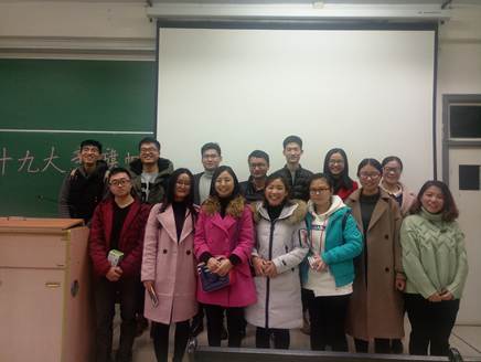为认真学习贯彻党的十九大精神,积极响应校团委的号召,化学与化工学院研有机、无机、高分子团支部以及化学与化工学院研究生党务中心于2017年12月9日下午在西十二N210教室联合举办了以“共谈十九大,唱响中国梦”为主题的特色团日活动。