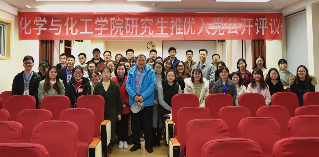 此次会议不仅为品学兼优的同学们提供了一个展示自我的平台,也给同学们提供了相互交流的机会,更为党的发展注入了新生力量。在大家的共同努力下,化学与化工学院2018年秋研究生推优入党公开评议大会圆满成功,在全体人员的合影中落下帷幕。