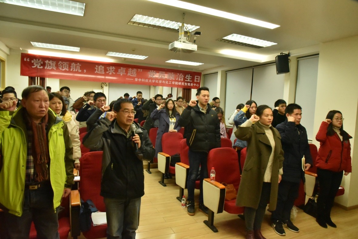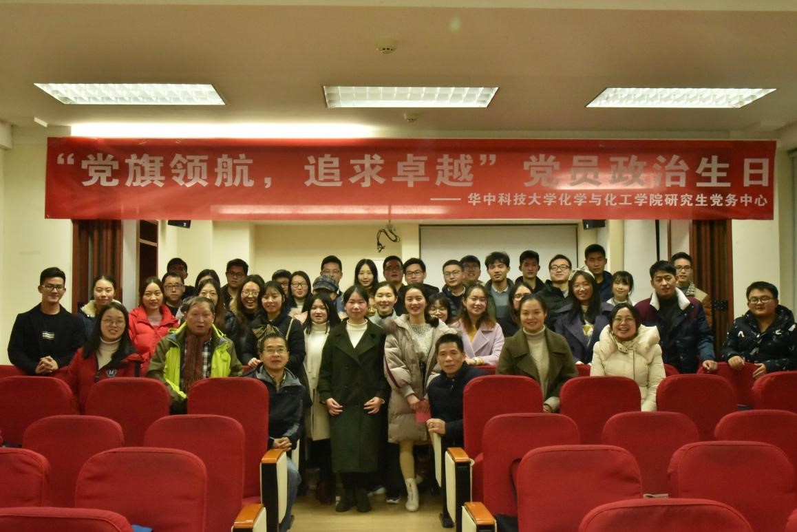 化学与化工学院研究生党务中心举办的2018年“政治生日”活动于12月17日晚六点,在化学楼一号会议室隆重举行,学院党委书记李涛教授,党委副书记吴疆鄂老师,学院副院长龚跃法教授、刘宏芳教授,以及党委组织员罗建新老师参加了本次政治生日的活动。