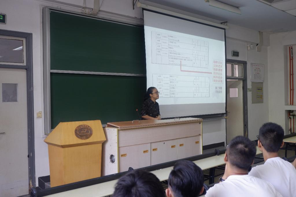 辅导员刘赵昊旻老师为同学们做了丰富而生动的“科普”教育。刘赵老师就新生情况、学院概况、办公室礼仪等方面进行了详尽的介绍,同时分享了自己的大学心得体会:“尝试、坚持与包容”,希望同学们能在这四年的时光中,成为更好的自己。