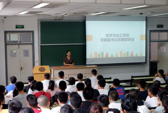 上午九点,化学、医科专业的入学教育在西十二教学楼举行。在化学专业的入学教育大会上,学院党委副书记吴疆鄂为大家讲话。吴书记深入浅出地为大家剖析了何谓大学,以及大学与高中阶段的差别,叮嘱同学们既要利用好华中大的平台,拓展兴趣爱好,充分挖掘潜能,更要牢记初心,坚持勤奋学习,争取有朝一日将自己的贡献书写在祖国大地上。同学们用心聆听,受益匪浅,更感到及早做好大学规划的重要性。