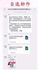 吉林大学2017级博士研究生扈殿文同学,为我们带来研究生党支部工作的分享经验。他作为物化北区研究生党支部书记,疫情期间仍不忘职责,时刻发挥着一名党员的带头模范作用,积极做好自己的本职工作,在开展学校规定的“三会一课”外,还通过线上平台等方式进行交纳党费、捐款等活动。最后,扈同学以“习近平总书记给北京大学全体援鄂医疗队90后全体党员的回信”作为结语,青年一代有理想,有本领,有担当,国家就有前途,民族就有希望!