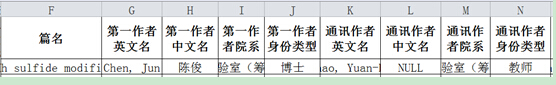 校科协按第一作者所在单位,通讯作者所在单位,参与作者所在单位的顺序将论文分到学院,一篇论文只分到一个院系,各院系间论文不重复。请老师核实、补齐表中作者的相关信息(从G-R列)。