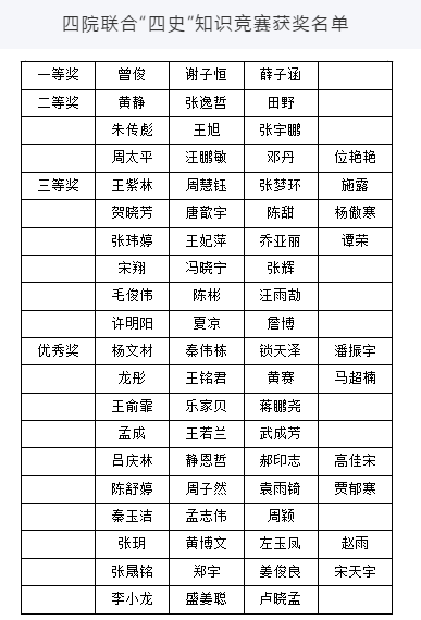 四史知识铭于心,初心使命践于行。建党至今,社会主义在我国发展取得了伟大成就。在即将迎来中国共产党建党100周年之际,在百年未遇之大变局的时代背景下,学好党史、新中国史、改革开放史、社会主义发展史是牢记党的初心和使命的重要途径,是党员的一门重要必修课,不仅是牢记党的初心使命的重要途径,更是一种迎接挑战的昂扬姿态。此次活动以赛促学、学赛结合,帮助四个学院的学生党员和入党积极分子深刻认识红色政权来之不易、新中国来之不易、改革开放来之不易、中国特色社会主义来之不易、党领导人民取得抗疫斗争重大战略成果来之不易,厚植同学们对马克思主义的信仰、对中国特色社会主义的信念、对实现中华民族伟大复兴中国梦的信心,鼓励同学们将爱国主义精神、集体主义精神、社会主义精神和抗议精神转化为全面建设社会主义现代化国家、实现中华民族伟大复兴的强大力量。