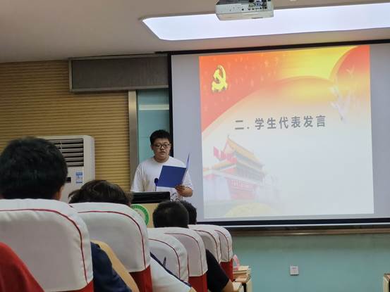 在激昂的国歌声中,开班典礼拉开了序幕。应化1803班的童桐同学作为学员代表进行发言。童桐作为第九届党建工作组主任、化学类2001班的学生班主任,始终在为同学们服务,向党组织靠拢的道路上不断前进。“东方欲晓,莫道君行早。作为发展对象的我们在骄傲光荣的同时一定要时刻保持思想上的先进性、行动上的超前性。”最后,童桐同学呼吁全体学员珍惜此次党校学习机会,牢记党的宗旨,秉承明德厚学、求实创新的校风,积极践行刻苦钻研、探索创新的学风,为学校,为社会建设贡献自己的力量。