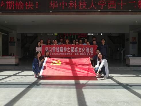 校园是我家,清洁靠大家。为美化校园环境,发扬学生爱护公物精神,为了培育和践行社会主义核心价值观,响应六有大学生号召,充分发挥党员的先进性与模范带头作用,促进我校精神文明建设,化学与化工学院研究生物化与工业催化党支部,于4月20日中午在西十二楼展开学习雷锋精神之“课桌文化”清理活动。