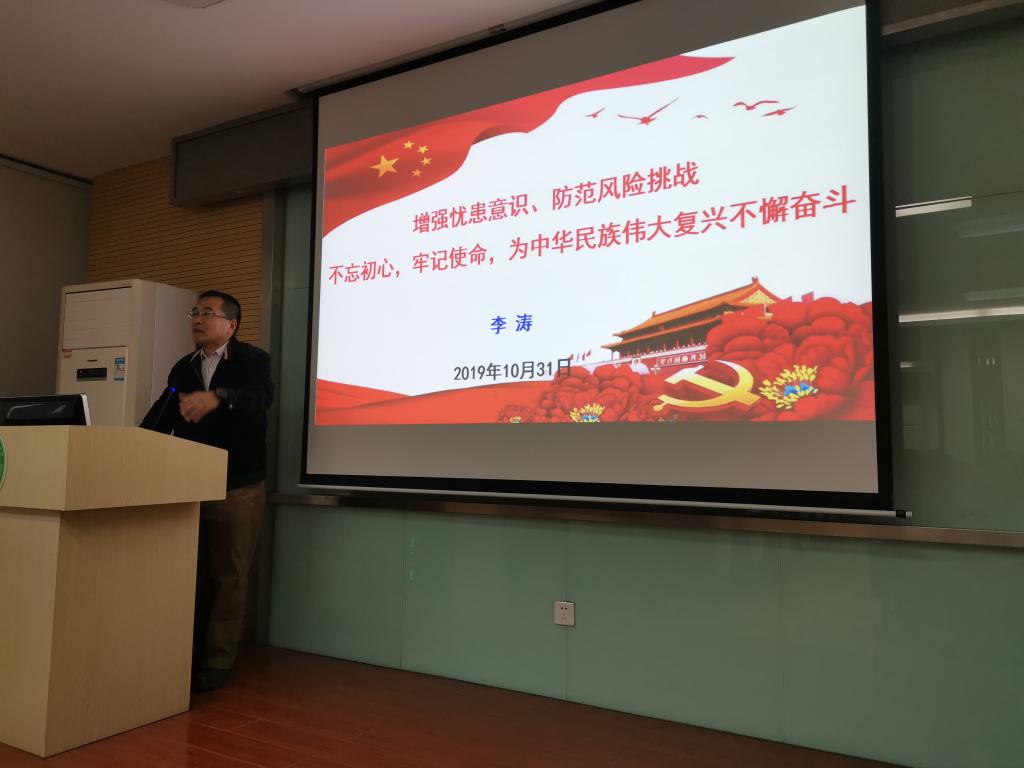 (通讯员:崔露、刘赵昊旻)1031日晚700,化学与化工学院党委书记李涛教授以“增强忧患意识,防范风险挑战,为中华民族伟大复兴不懈奋斗”为主题,面向学院教师、学生党支部全体委员讲授党课。华中科技大学学工处副处长刘雅然、原软件学院党委书记陈业美、化学与化工学院党委副书记吴疆鄂、副院长刘宏芳、龚跃法与学院党支部全体委员共同聆听党课。在“不忘初心、牢记使命”主题教育的深入推进下,李涛书记指出,新时代党员干部应当“增强忧患意识,防范风险挑战,为中华民族伟大复兴不懈奋斗”。