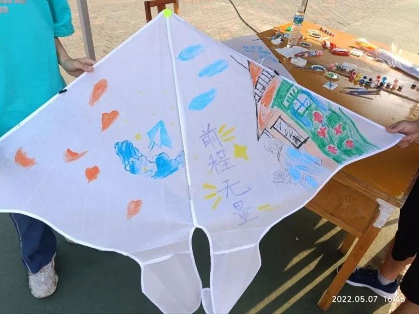 5月3日下午三点,在工作人员对活动简单的介绍后,同学们便开始对空白的风筝进行随性的涂鸦,同学们相互交流,随意遐想,大胆创造,画出一幅幅美丽的画卷。画完之后,同学们便在操场自由的奔跑,风筝也因此高高地飞扬在天空中。