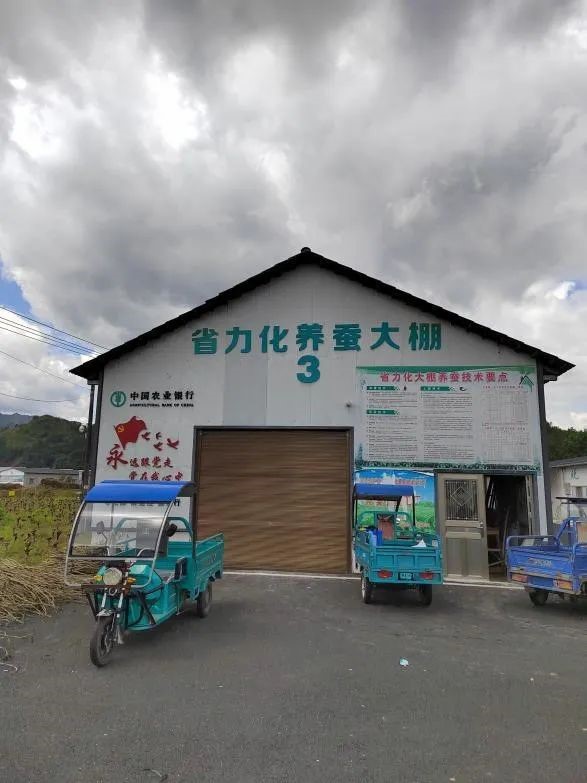 蚕桑产业是黄溪村的特色产业。不巧的是,我们到达时恰逢黄溪村的“休蚕期”,当地每年养蚕分为两个时期,上半年截止至6月28日左右,下半年的养蚕期从8月25日开始。虽然没能亲眼看见可爱的蚕宝宝。但在陈书记的带领下,我们见到了一排排整齐的桑枝,颇具规模。