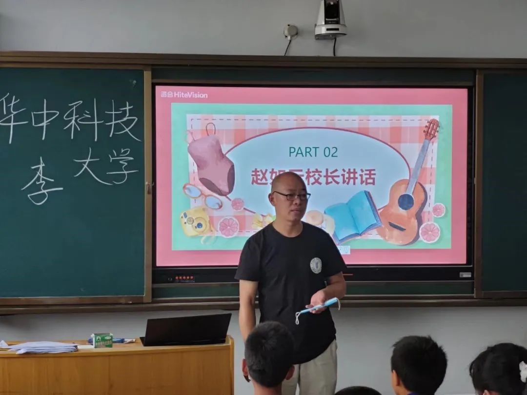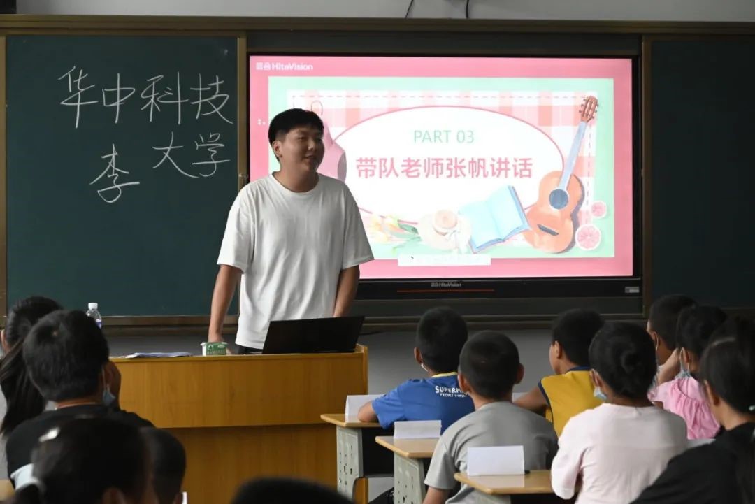 第三个环节,由晨曦之光支教队的领队老师,华中科技大学化学与化工学院辅导员张帆老师上台致辞。张老师向小朋友们详细的介绍了华中科技大学,并且给予孩子们殷切的期望,希望孩子们能够成为有理想有知识,有信念的人。希望孩子们能够以高水平大学为目标,不懈努力,刻苦学习,争取能够进入国家一流高等学府深造。