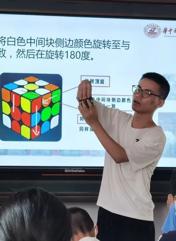 小程老师带来的课程分别是魔方和武术,孩子们好奇的眼睛始终离不开程老师手中转动的魔方,而在室外,孩子们的武术动作也是学的有模有样。