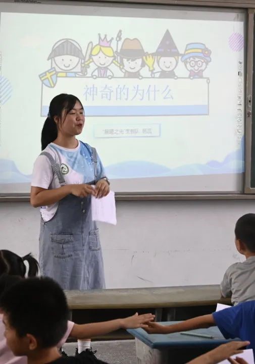 在破冰仪式完成之后,大家正式进入到课堂之中。按照年龄大小,将一、二、三年级的小朋友们分到一个班级,成为“小班”;将四、五、六年级的小朋友们分到一个班级,成为“大班”。并由每位队员,为孩子们带来精彩各异的有趣课程。