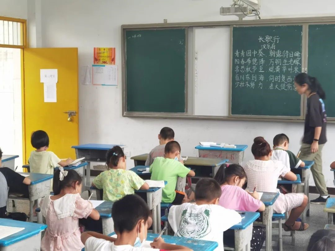 而在下午,大班和小班的同学们,都带着自己的暑假作业来到了学校,由队员们带领大家,督促大家完成暑假作业。或者会让孩子们安静地阅读课外读物,丰富自己的知识。也会带同学们学习古诗词,感受中国古代诗词文化的风采。