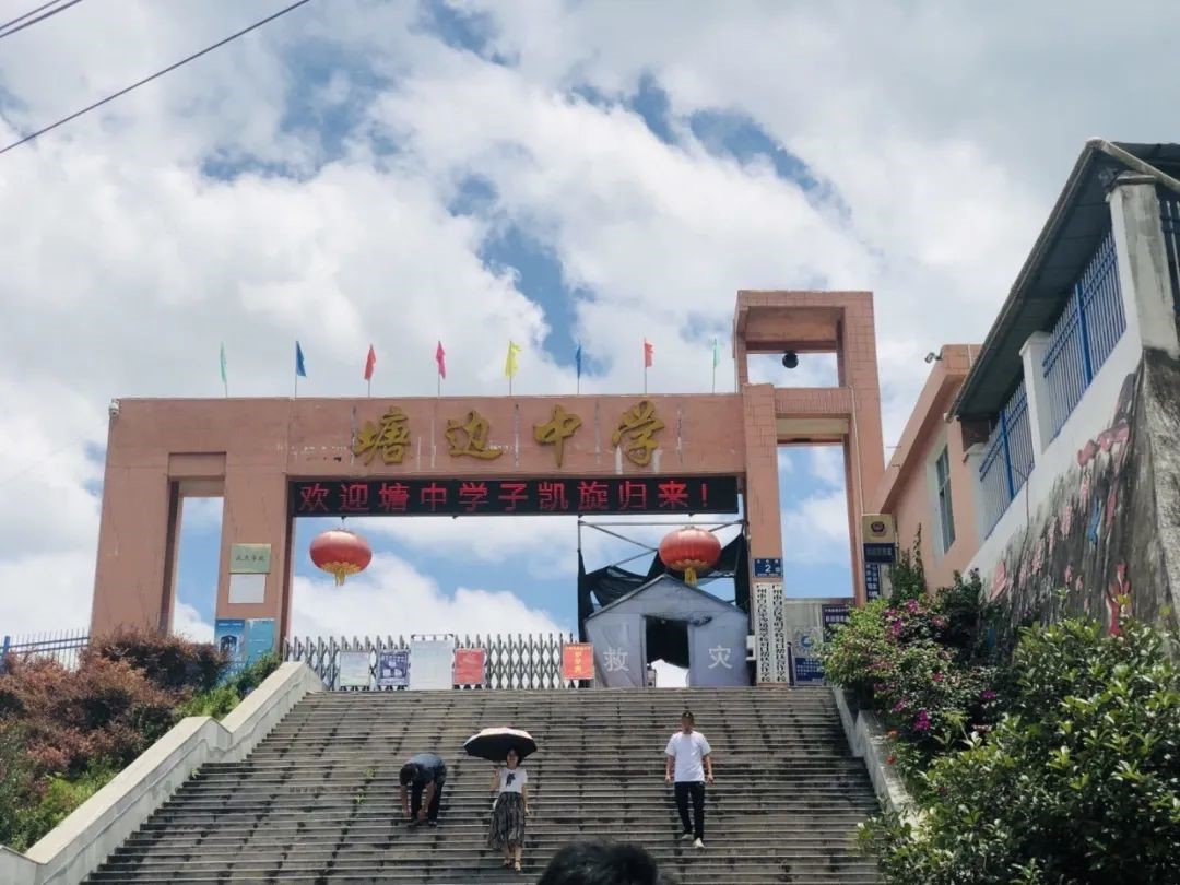 在老师和校领导驱车带领下,我们一行人抵达了塘边中学校门。在聊天中,我们深知塘边教育亟需新能量,绝不可辜负领导们对我们的期待。密布的白云映衬下,校门显得更加恢弘壮观。