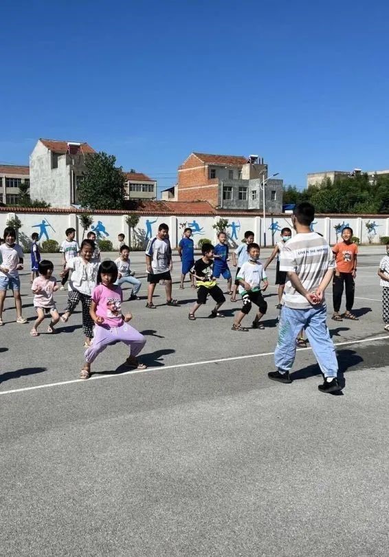 在结束了一天的课程后,孩子们和老师们满身疲惫,在这时,小老师们便带着孩子们到户外,到操场去,去散步,去运动,去放松,劳逸结合。