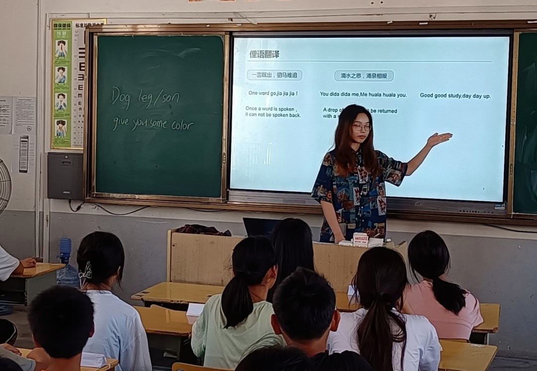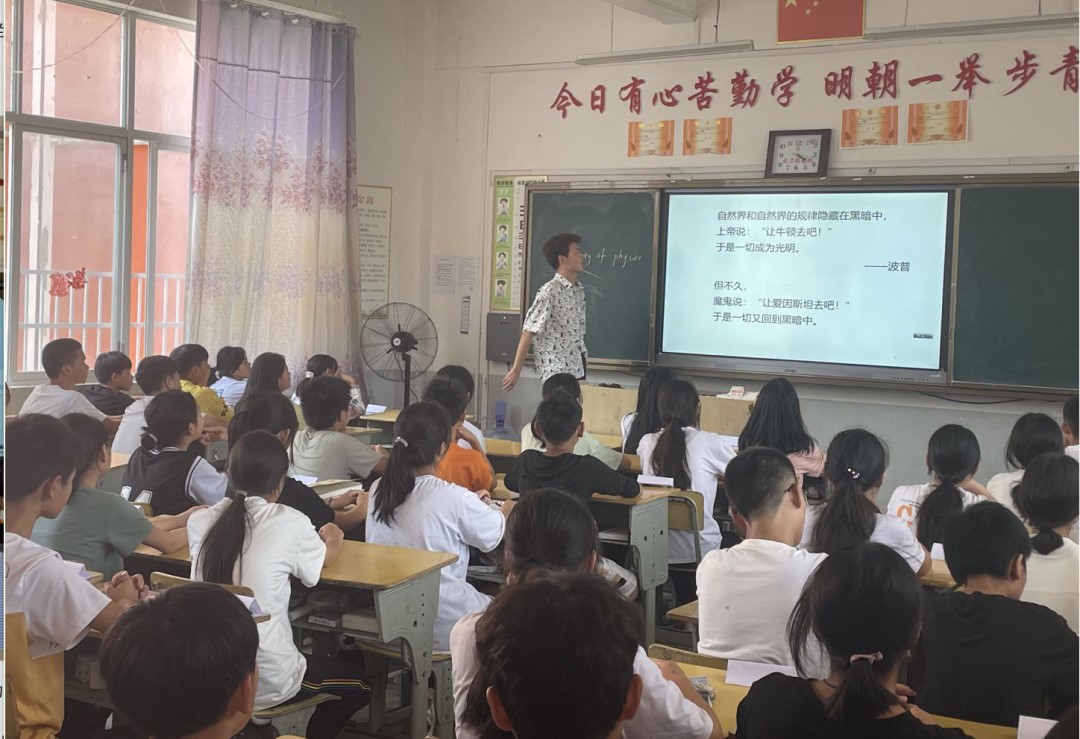 今天上午下午都有课,上午第一节课还有些许紧张,时间把控不好,最后还剩10min没有课程内容但是刚好急中生智把晚会安排了,今天晚上就见到班上三个女孩子活动结束了还在练习,真的很感动,看到现在这些孩子们,或有些许迷茫但又对未来充满向往,真的希望可以为他们做一些事,改变一下他们的思想与现状,激发起他们对大学的向往!我们能做的很有限,但如果能在他们心中激起哪怕一点点涟漪我也已经很满足了!听到孩子们齐声回答问题时,真的有一种欣慰,期待之后的支教生活!