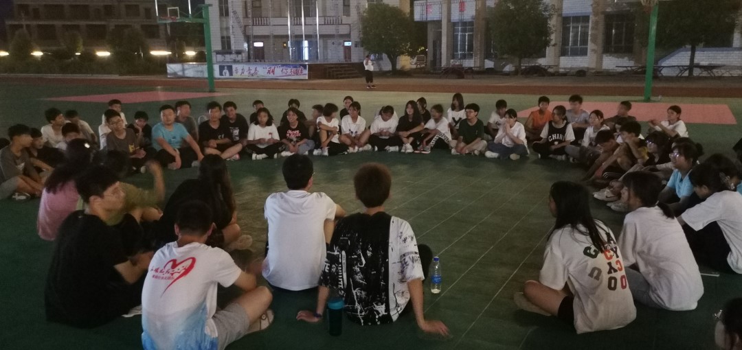 晚上,队员们觉得可以给大家举办一场星空座谈会,全体同学围坐在操场上,伴着清凉的风,彼此聊着感兴趣的问题,从三国演义到红楼梦,从中考到高考。但天宫不作美,座谈会进行到一半,大风吹来,雨水也接踵而至。大家只好匆匆结束今天的活动返回宿舍。星空下的谈话充满了欢笑也夹杂着感动,孩子们和学生们的心似乎被一句句语言串联起来,天空闪烁着点点星辰,星空之下也闪烁着点点明星。