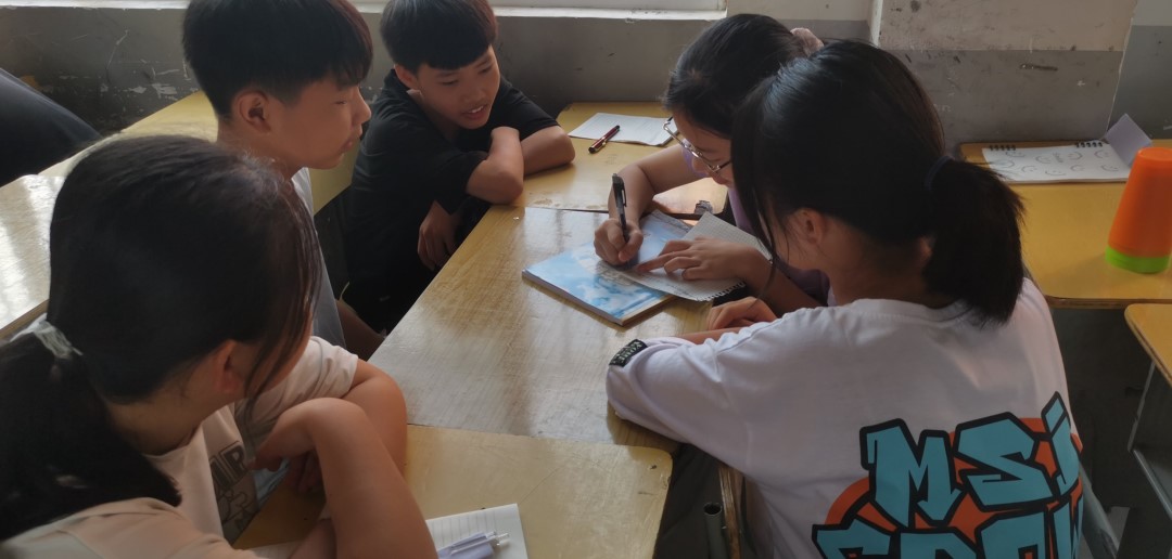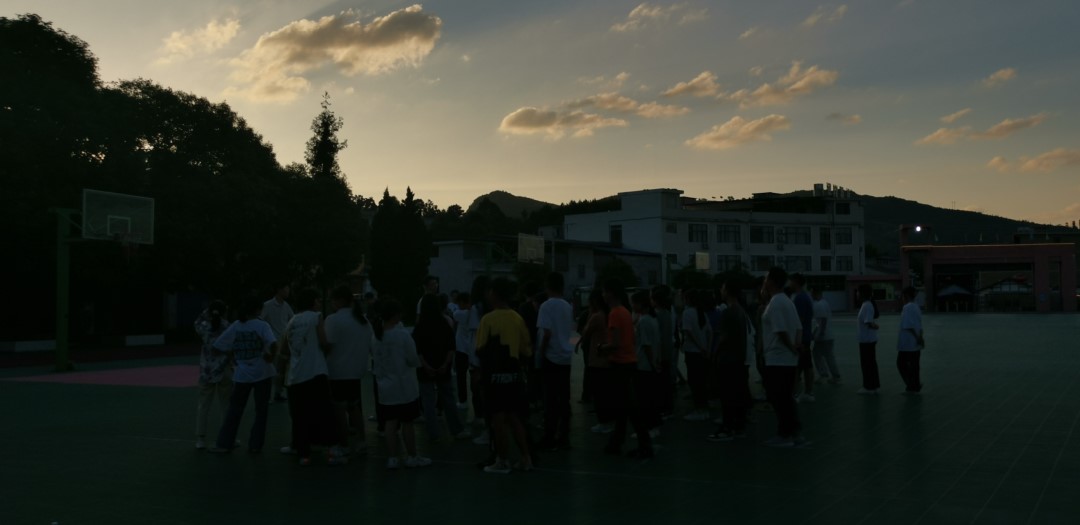 第二天的清晨铃声从公鸡打鸣换成了孩子们起床后洗漱刷牙的声音,一句句我听不太懂的西南方言窜进耳朵里,提醒着我新一天的开始。课间我在教室里来回转,一边记忆孩子们的名字,一边观察孩子们的课余活动,有趣的是虽然时代变迁科技发展但孩童时代大家干的事情也没有太大变化——写作业、看网购的小说或必读课外书、在走廊聊天、在操场打篮球、去小卖部买零食、趴着睡觉……监课或者课间我喜欢坐在教室最后一排观察他们,想尽力用眼睛记住此时此刻,记住每一个孩子的模样,看着他们时常会有些恍惚,仿佛回到自己上初中的时候,单纯天真、埋头学习、最快乐的眼里有光的校园时光。下午我们一起去食堂,刚出办公室便看到破冰时很积极聪明的女孩子害羞得跑过来,将小纸片塞到了甘浥尘队员手里,上面有中性笔画的老师的头像和姓名,然后立马跑开了。虽然不是每个人都收到这份“小礼物”,但我们都非常惊喜,感动于付出终有回应,惊喜于绝大部分孩子还是能感受到我们的热情与善意,鼓励着我们更加认真更加有自信。晚间进行了户外游戏活动,活动进行得非常成功,老师和同学们之间的距离很快拉近,我们也更加了解孩子们的想法,整个氛围非常得快乐青春,会一直记得2022.7.26的夜晚。