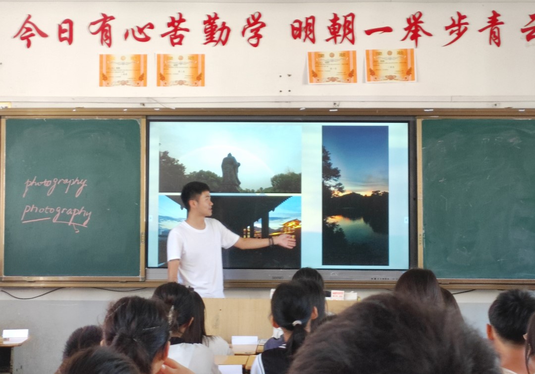 这节课上,由陈龙队长带领大家初步了解摄影,讲解了摄影与照相的区别,并介绍了普利策奖, 展示了优秀摄影作品。课堂后半部分,随着展示自己的摄影作品,陈龙队长分享了自己的摄影之路。每一张相片出现,同学们都仔细端详,积极发言,逐渐学会了欣赏摄影作品的美学价值、体会其社会意义