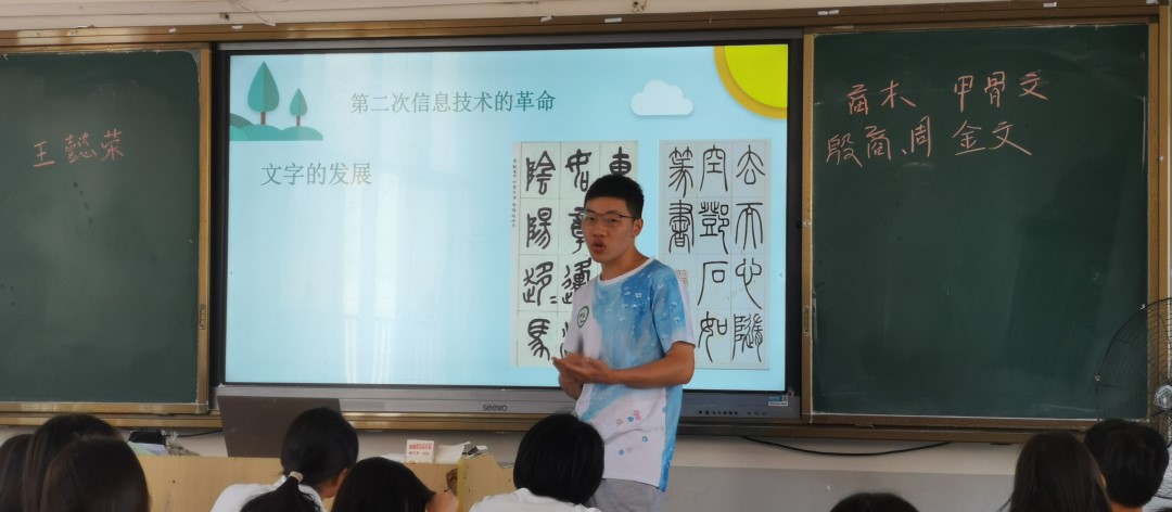 在昨日的课堂上,毛智用队员已经为学生们科普了第一次信息技术革命、语言产生等知识,打下了基础。
