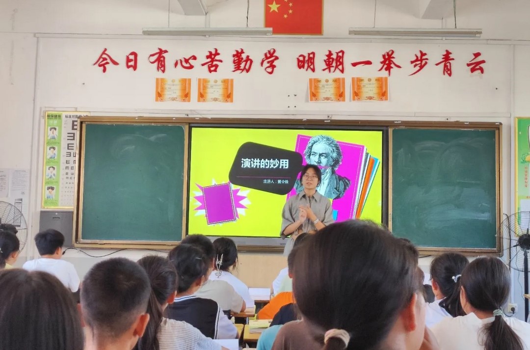 黄令姝老师在今天的第二堂课,讲解了演讲的基础要求,演讲和朗诵的比较学习等等。课堂上,有不少同学们尝试演讲的环节,大家跃跃欲试,阵阵掌声经久不息。最后,课堂以杨诗雨同学和黄令姝老师共同的一段演讲告结,同学们反响热烈,这堂课深入人心。