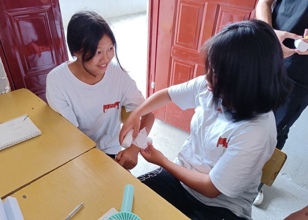 昨天的在和同学们在操场交流之前遇到了一些小插曲,其中一位男生把一位女生惹哭了。我们从未处理过这种事情,但陈龙队长和周宇轩第一时间将两个人拉开,并询问事情的缘由。女生因为收到委屈,选择了锤墙发泄的一个方法,但事后在陈队和周宇轩的安慰调节下,男生向女生道了歉,女生也慢慢缓和了情绪,重新加入到交流中来。事后我们询问女生为什么要锤墙,她说痛感可以帮她宣泄情绪。后面陈龙队长建议她可以采取记日记的方式宣泄情绪,她也觉得这是一个不错的选择。从这次事件可以看出,处于她们这个年龄段的孩子,总是会出些矛盾或冲突,如果没有经过良好的教育和引导,很容易养成不好的习惯。这次突发的情况给我们敲响了警钟,支教过程中可能会遇到很多小朋友们间的冲突矛盾。我们必须理解这是一个正常的现象,也是她们成长道路中必须经历的一个过程,我们需要做的是在发现这些问题后,对她们及时引导和建议,防止她们误入歧途。