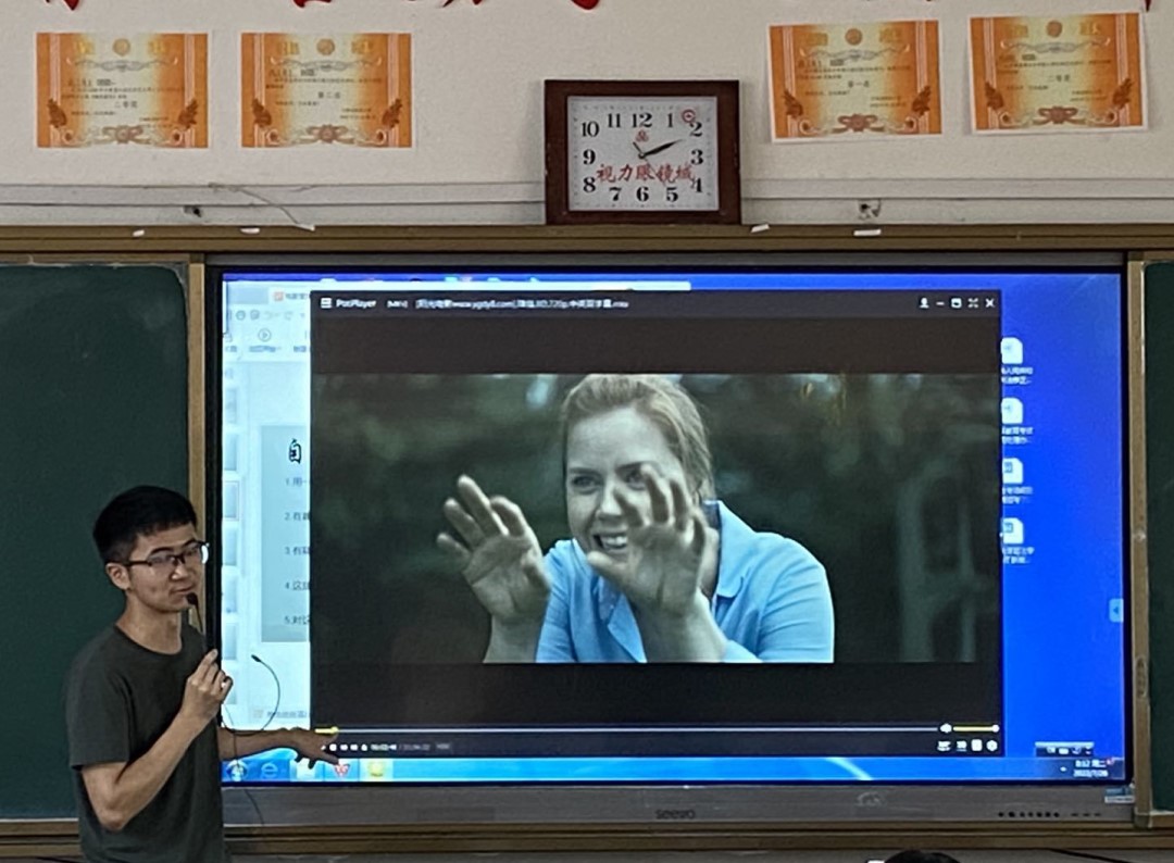 陈龙队长带领大家思考电影细节,分析剧情结构,体会隐含哲理。在欣赏影片过后回顾赏析,娱乐身心的同时,提高审美,开拓视野。课堂别具一格,学生们听得十分入神。