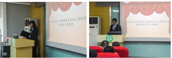 随后,化学与化工学院研究生会副主席徐杏宣读《华中科技大学化学与化工学院七届一次研究生代表大会筹备工作报告》,对大会筹备委员会的工作给予了充分肯定。化学与化工学院第六届研究生会主席张天驰宣读《华中科技大学化学与化工学院2016年研究生会工作报告》,对过去一年研究生会的工作成果及其经验做了全方位的总结,并表达了对未来研究生会工作的展望和殷切期待,希望研究生会能继续坚持以服务同学为宗旨,以锻炼自己为目标,勇于创新,积极地开展工作。参加大会的代表们认真听取了上届研究生会工作报告,对过去一年研究生会的工作给予了充分的肯定,并设想了今后我院研究生会工作的任务和方向。本次大会对今后研究生会工作起到很大的推动作用,具有重要的指导性意义。