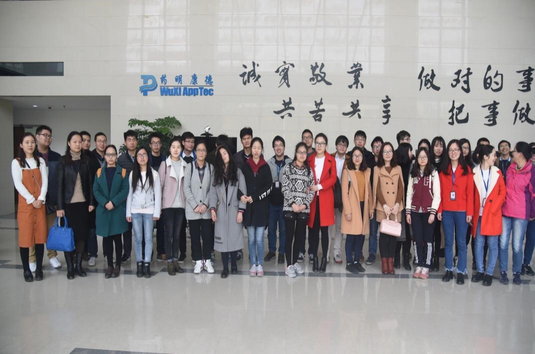 3月9日,华中科技大学化学与化工学院研究生会第一届企业寻访活动于药明康德新药开发有限公司成功举办。上午8点50左右,老师们带领30余名化院研究生乘车来到武汉药明康德公司,该公司人力资源部工作人员和就职于此的华中科技大学校友代表们予以了热情接待。