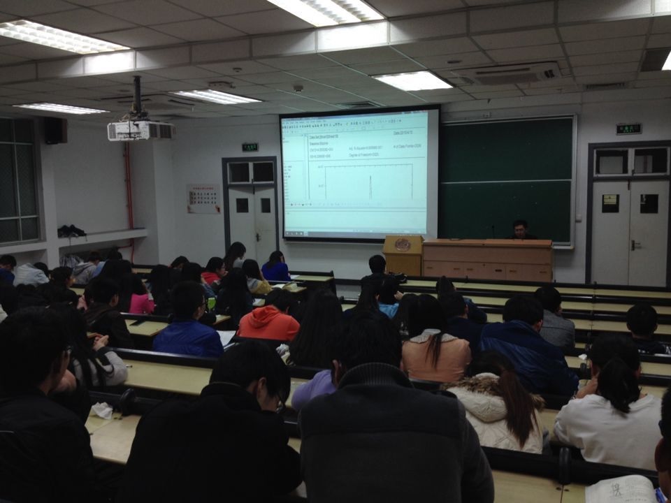 第一期活动涉及了研究生新生最关心的一些问题,同学们的热情都比较高涨。吴俊同学首先给同学们介绍了文献查阅技巧,看得出这些都是他在平时的学习过程中逐渐摸索掌握的,有多处常容易被忽略的小细节也进行了细致耐心的讲解。随后,他又向同学们介绍了作图软件origin、文献管理工具endnote的一些使用技巧,对于这些化学专业常用的工具,无论巨细,他都为同学们做出了很好的介绍。最后,他着重为大家演示了作图软件origin的一些常用技巧,比如作图、拟合、误差棒等。在这个过程中,吴俊同学使用具体的数据实例一一为大家做出示范,原本预定一个小时结束的讲解持续了近两个小时。