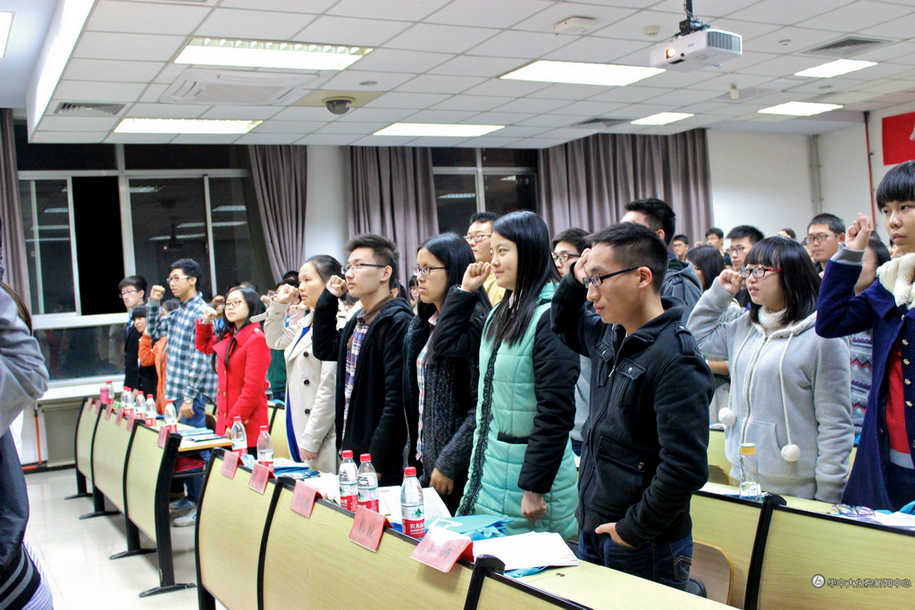 化学与化工学院团学联社会实践部部长赵亚军为11位志愿者队伍的队长颁发聘书,并带领志愿者们庄严宣誓。大学生社会实践中心培训组成员韩宇石和季晓雨分别对志愿者的定位和礼仪方面进行了培训。